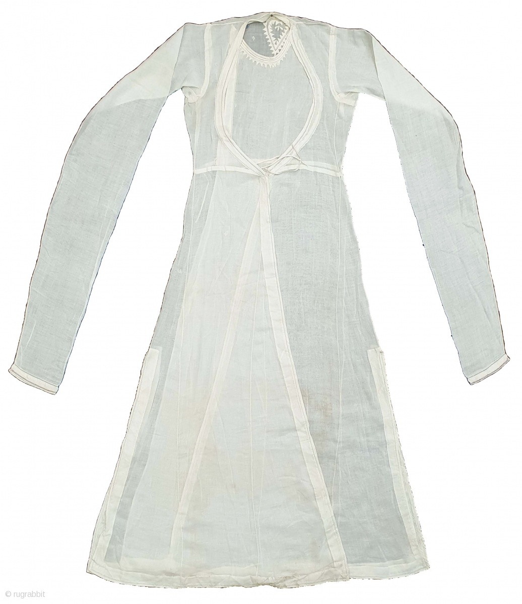 Angarkha(Coat) Very fine Muslin Cotton with Applied work, From Uttar Pradesh. North-India. India.C.1900.Worn by Royal Nawab Muslims Family Of Lucknow(20201226_145930).