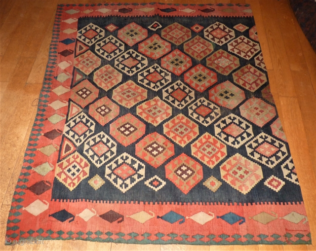 Caucasian Kilim fragment. Size: 127 x 159 cm. Used condition.