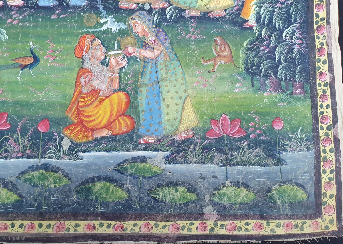 Pichwai For the Daan Lila (Extracting The Toll). From Nathdawara Rajasthan, India. India. Early 20th Century. Painted On the Cotton, Pigments Painted Heightened With Gold. Its size is 89cmX120cm(20210102_131543).