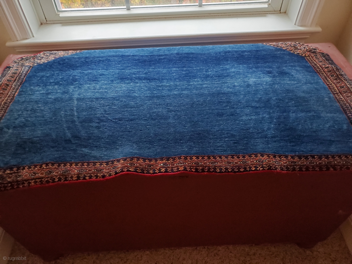 This post is for a saddle cover probably ceremonial. Unusual 8 sided format .Great royal blue. Has some writing on the back from a previous collector . Translate?