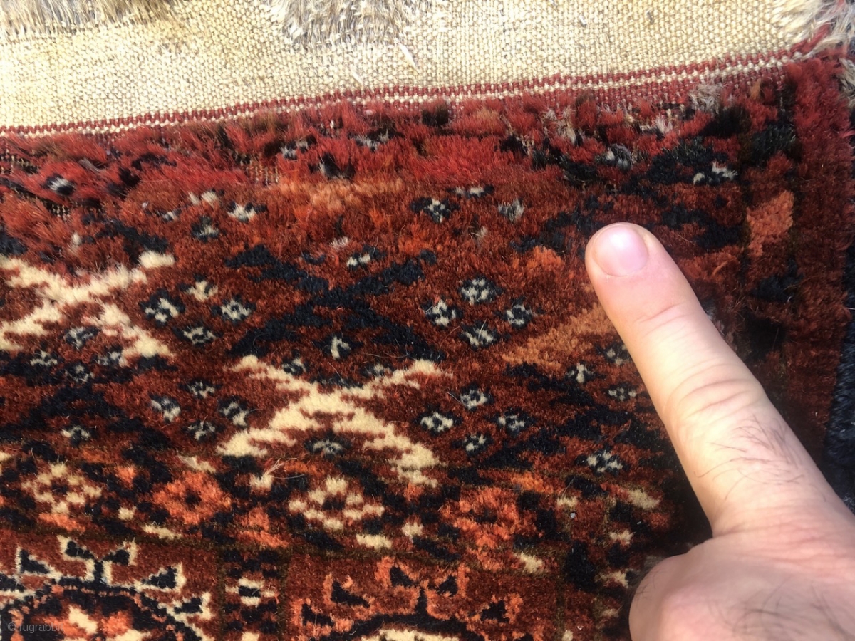 a lovely small antique Turkmen Tekke rug with 2 rows of Guls, Age: 19th century. Size: 170x105cm / 5'6''ft x 3'5''ft. All natural colors, good overall condition, little old moth damage at one end.