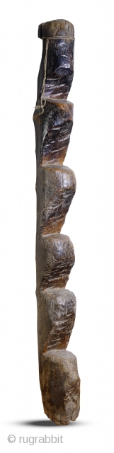 This type of ladder was used in Nepal to access the sleeping loft in village houses. It has a wonderful patina from long use. (Dimensions: Height: 89 in/266 cm Width: 7.5 in/19 cm Depth: 7.5 in/19 cm Weight: 72.7 lbs/33 kg)