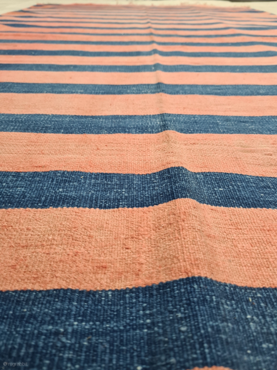 Blue-Red striped Jail Dhurrie (Cotton) From Bikaner ,Rajasthan , India. India.