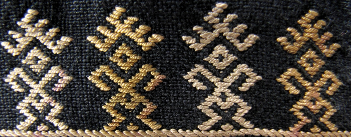 Exquisite embroidered panel from the Yao, sometimes referred as the Mien, ethnic group from northwest Laos near the Vietnamese border. This piece is the back panel from of a woman’s jacket with silk embroidered thread on hand woven indigo dyed cloth and is in excellent condition (one tiny pin hole and later embroidery noted in enlargements), circa 75 years old. l: 58cm/22.8in and w: 50cm/19.8in. Free shipping Hong Registered Airmail.