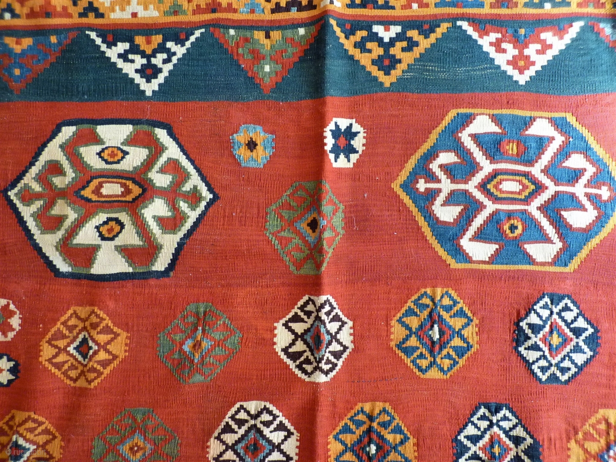 a great Qashqai kilim woven with very finelly spun wool, creating thus a kilim of great appeal. The design is very well done and with attention to small details. All natural dyes. It has some small repairs (see photos), but otherwise in very good condition. Bought it during our last trip to Southern Iran. 296×168 cms, 1900s. (k1910451).