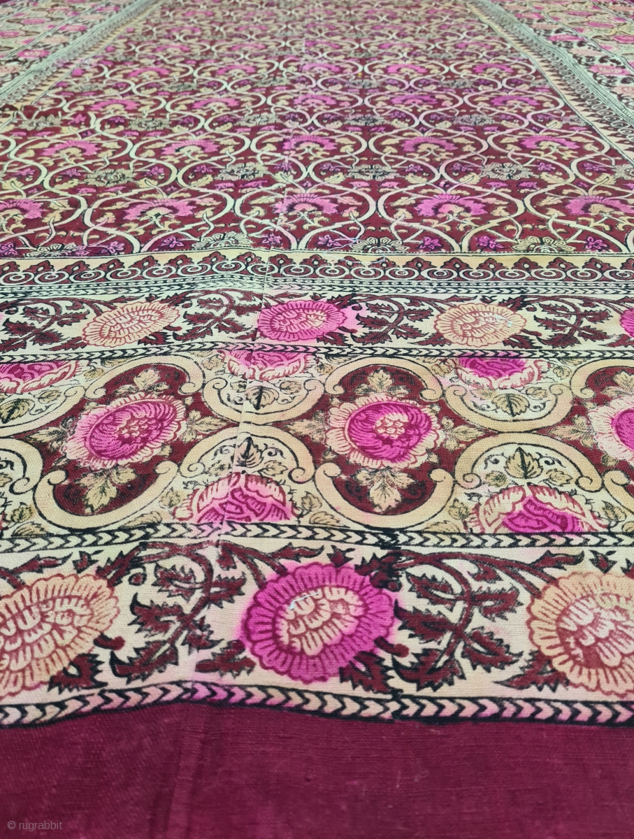 Floral Chintz Kalamkari Canopy, Hand-Drawn , With Wood Block- Mordant- And Resist-Dyed Cotton, From Sindh or Lahore Region of North-West India. India.