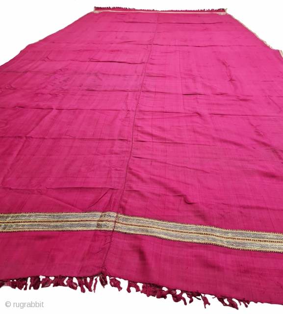a Very Fine Paithani Plain Weave Dupatta, Its characterised by borders of an oblique Paisley (Ambi) design,,It’s an Gajji-Silk and zari weave Dupatta, This type of Dupatta is named after the Paithan town in Aurangabad Maharashtra state of India. India.C.1850-1870.its size is 142cmX310cm (20210325_165016).