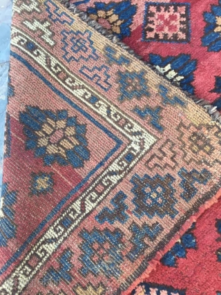 Beautiful, unique antique Uzbek rug. Near full pile on one end with medium to low pile on the rest. No visible repairs besides the selvedges rewrapped. No color runs. Definitely a striking piece.