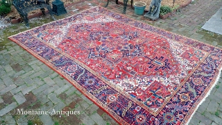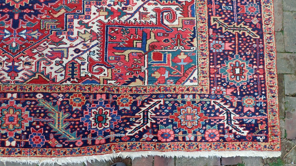 heriz-- 8.4 x 11.10-- Classic medallion with wide borders. Thick plush wool w/ fine saturated natural dyes.