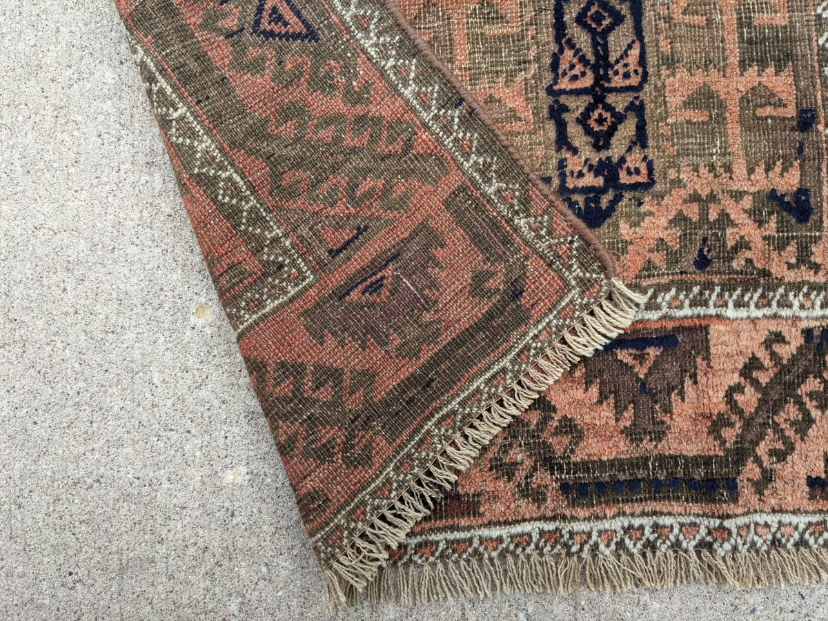 Antique Yaqub Khani Baluch. Interesting, nice and mellow color palette. 2'8" x 4'8" or 82 x 142cm. Typical oxidized browns. No holes.