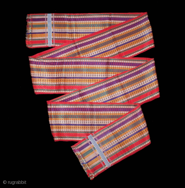 Lungi Silk Brocade Used as Turbans and Shoulder Cloth Maldhari Cattle-Herders worn in Kutch, Sindh and Rajasthan India.C.1930. Woven in Thatta region of Sindh, Pakistan.Its size is W-50cm x L-454cm.(DSL04350).