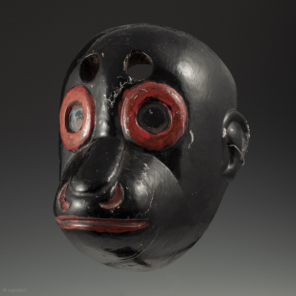 Monkey mask, Guatemala. Wood, paint, glass, 7.5″ (19 cm) high by 6.25″ (16 cm) wide, early to mid 20th century.