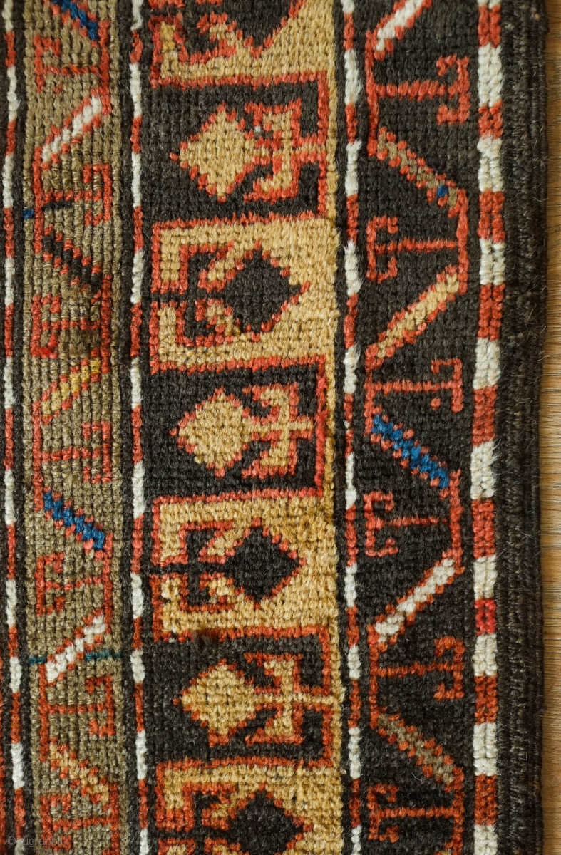 Genje or Karabagh Rug, End of 19th Century. Fantastic juxtaposed floral border reminiscent of Seljuk motifs. All good colors. Excellent size. Very well done repairs on the bottom section which are unnoticeable. 102 x 164 cm