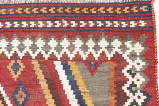 a Qashqai kilim with a very free design. All good dyes. Sheep´s wool with goat warps. Bought during our last trip to Iran. 243x154cms, (k1910350). You can purchase this kilim directly from our web or get in touch: https://nomada.biz/en/producto/antique-qashqai-kilim-from-iran-243x154-cms/