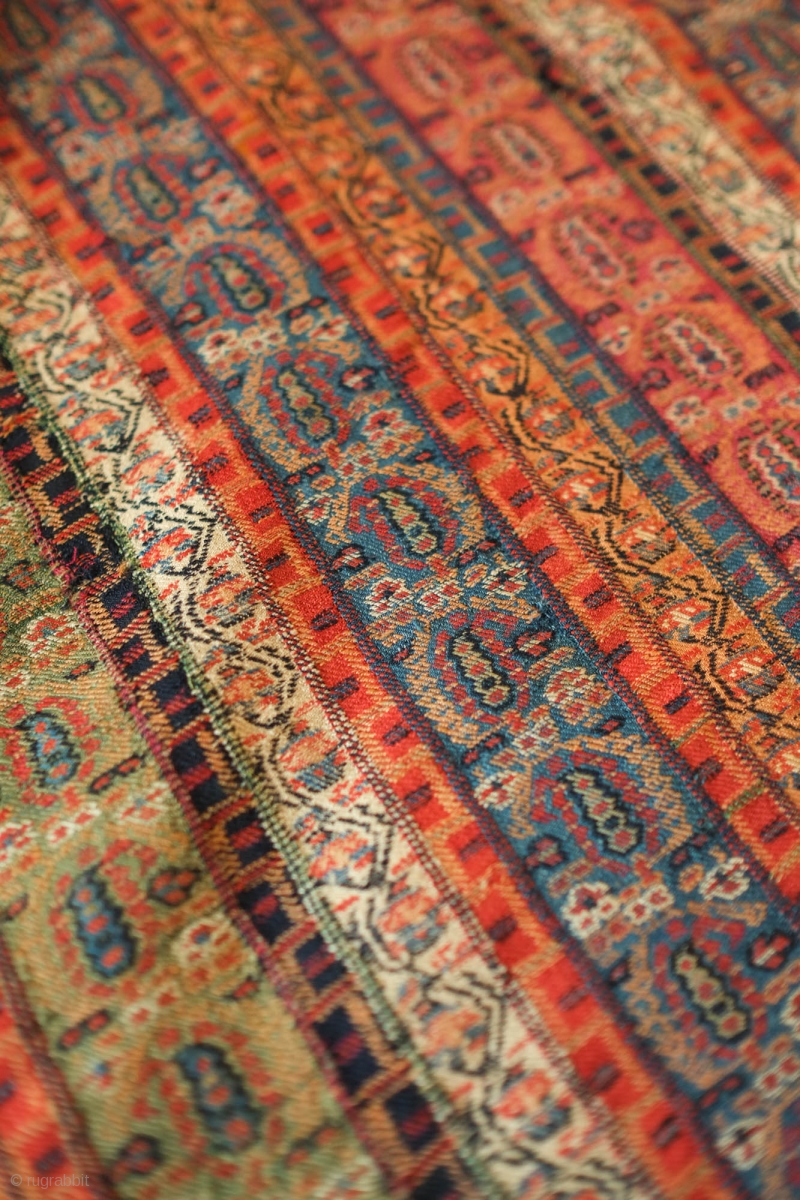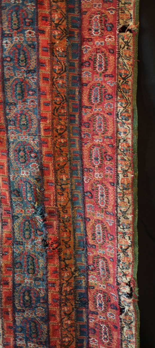Sivas area shawl, 19th Century. This wonderfully fine shawl was probably woven by Armenians in a workshop in or around Sivas in central Turkey. The articulation of the botehs and the wider bands indicate a professional weaving origin for this shawl. Overall in very good condition with a couple of small holes. a wonderful collection piece. 96 x 200 cm
