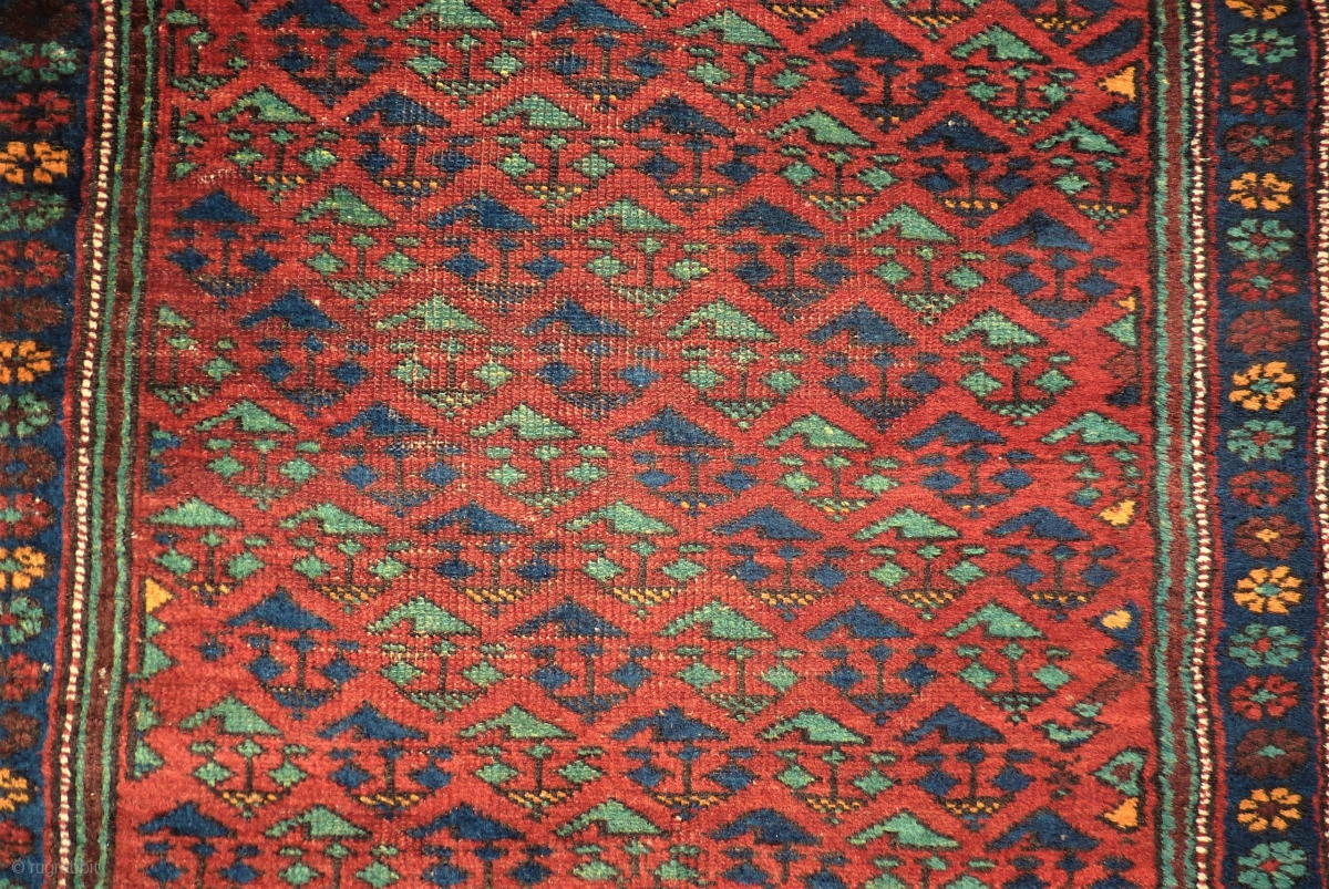 antique Kordi rug. Size: 105 x 231 cm. Some used pile.