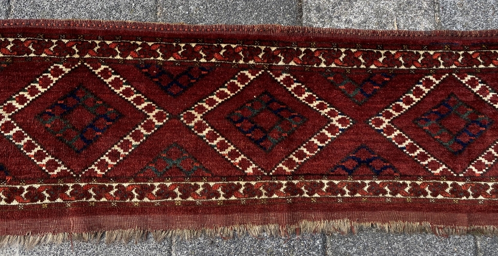 Beshir jollar 58.7 x 16.1 inch (149 x 41 cm). In all aspects excellent. Goat hair warp, camel hair weft. Small tip of mothing on the left hand side. You may contact me directly at alexanderbakker@flairforflavor.com, as the rr system seems to be working intermittently. Thanks, Alexander