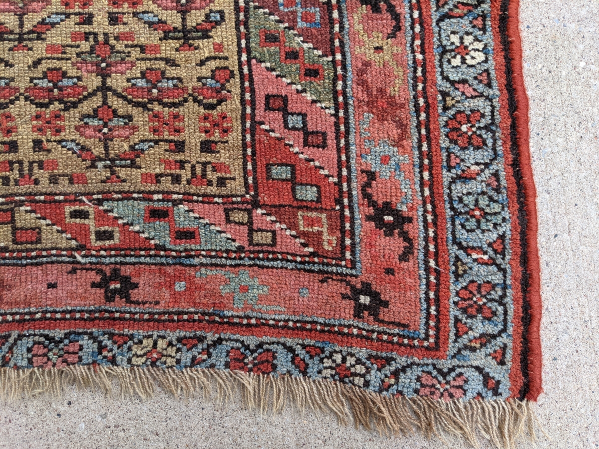 Beautiful antique Kurdish rug. 3'8" x 6'11". Wonderful light blues. Decent pile.