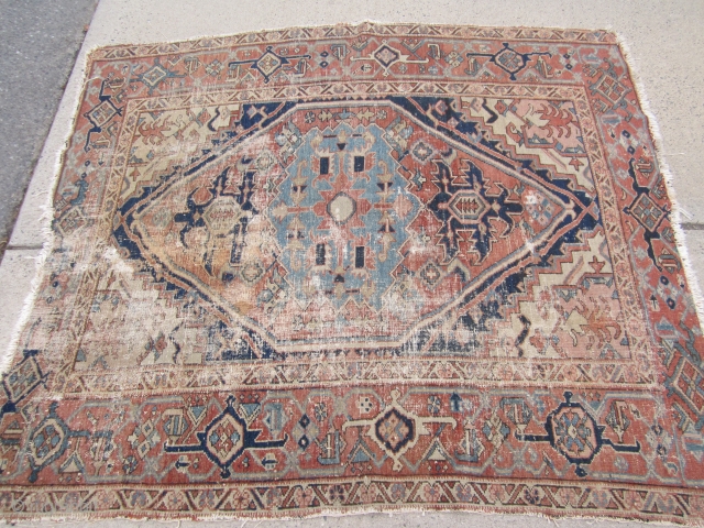 antique squarish serapi rug 4' 10" x 5' 7" poor condition no dry rot . solddddddddddddddddddddddddddd