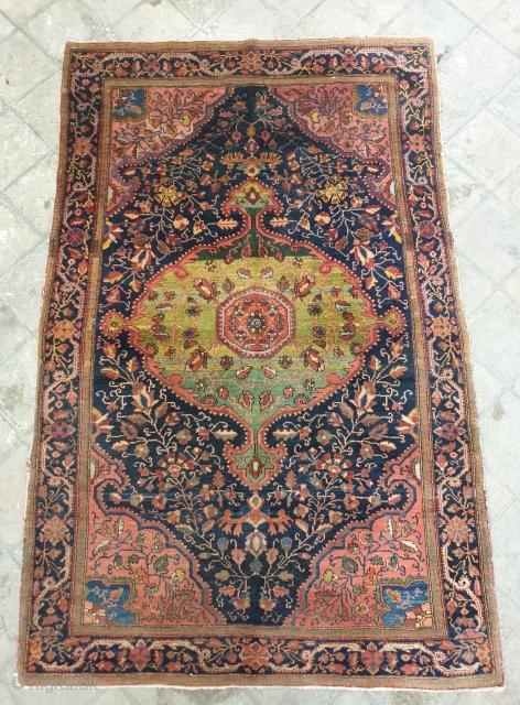 Stems and leafs creates a marvelous vision in this antique farahan rug , superb natural colours adds account into it , pleasing green colors on medallion would catch everyone's attention , circa 1920 , size 190 * 120 cm