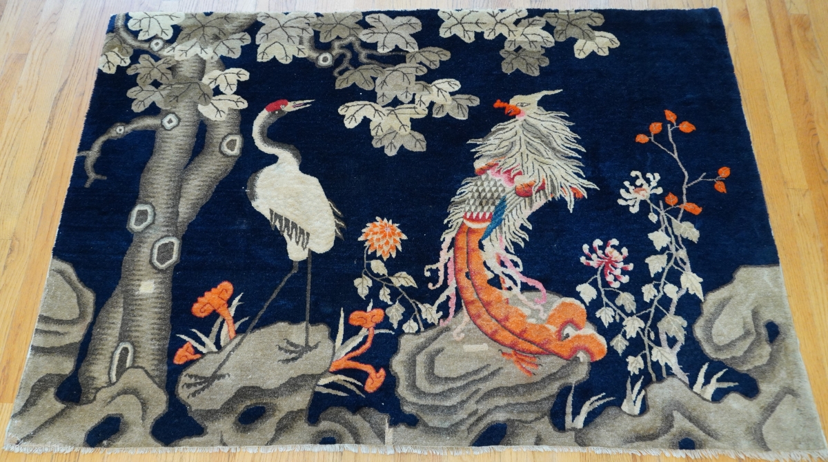 Antique Chinese Peking oriental rug, ca. 1900s, size is 3'10" x 5'10", very good condition with a few very small old repair, has been hand washed and cleaned professionally just recently, sides are in original and in great condition.