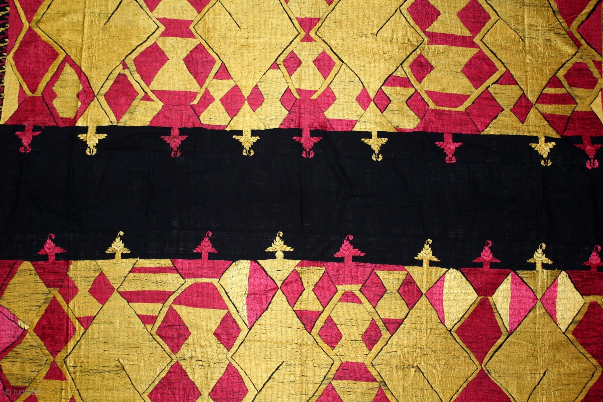 Indigo Sarpallu Phulkari From East(Punjab)India called As Sarpallu(Patang Design).Proper Kapurthala of Punjab India.Circa 1900. Floss Silk on Hand Spun Cotton khaddar Cloth.(DSL05040).