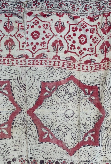 early indian block print and painted cotton panel fragment with large scale octagrams border.