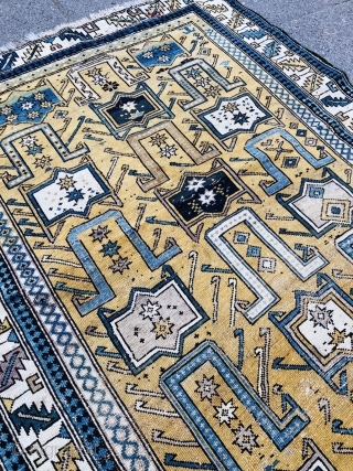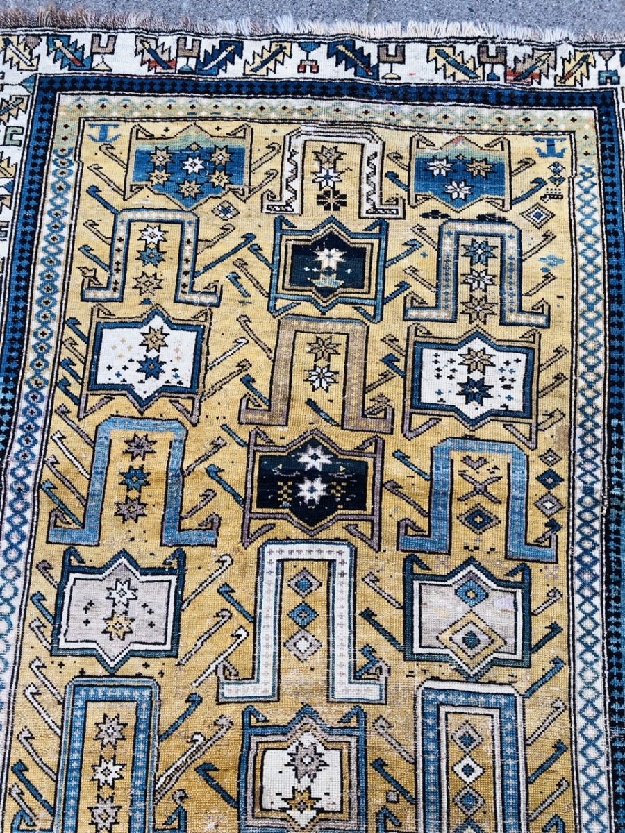 Antique saffron yellow Caucasian Shirvan rug from the estate of late German painter Charles Crodel. Size: ca. 145x115cm / 4'8''ft by 3'8''ft