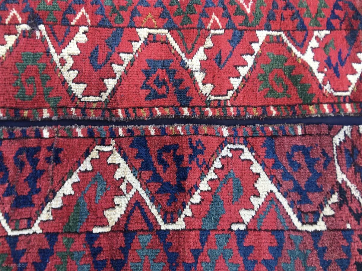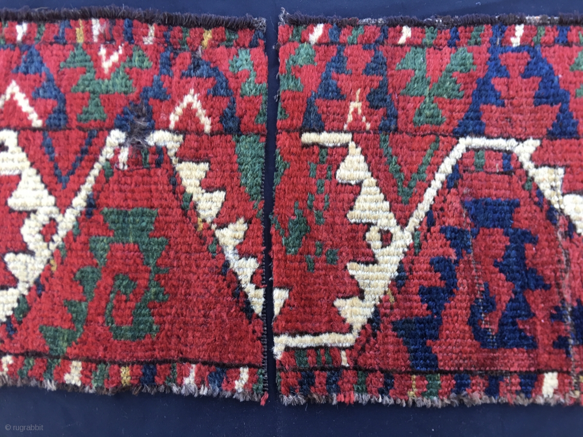Two great Beshir rug fragments. Size is cm 31x85 & 31x95. Second half of 19th century. High pile, great silky wool, fantastic colors: 2 greens, 2/3 reds, 2/3 blues, a super yellow. Lovely pattern.