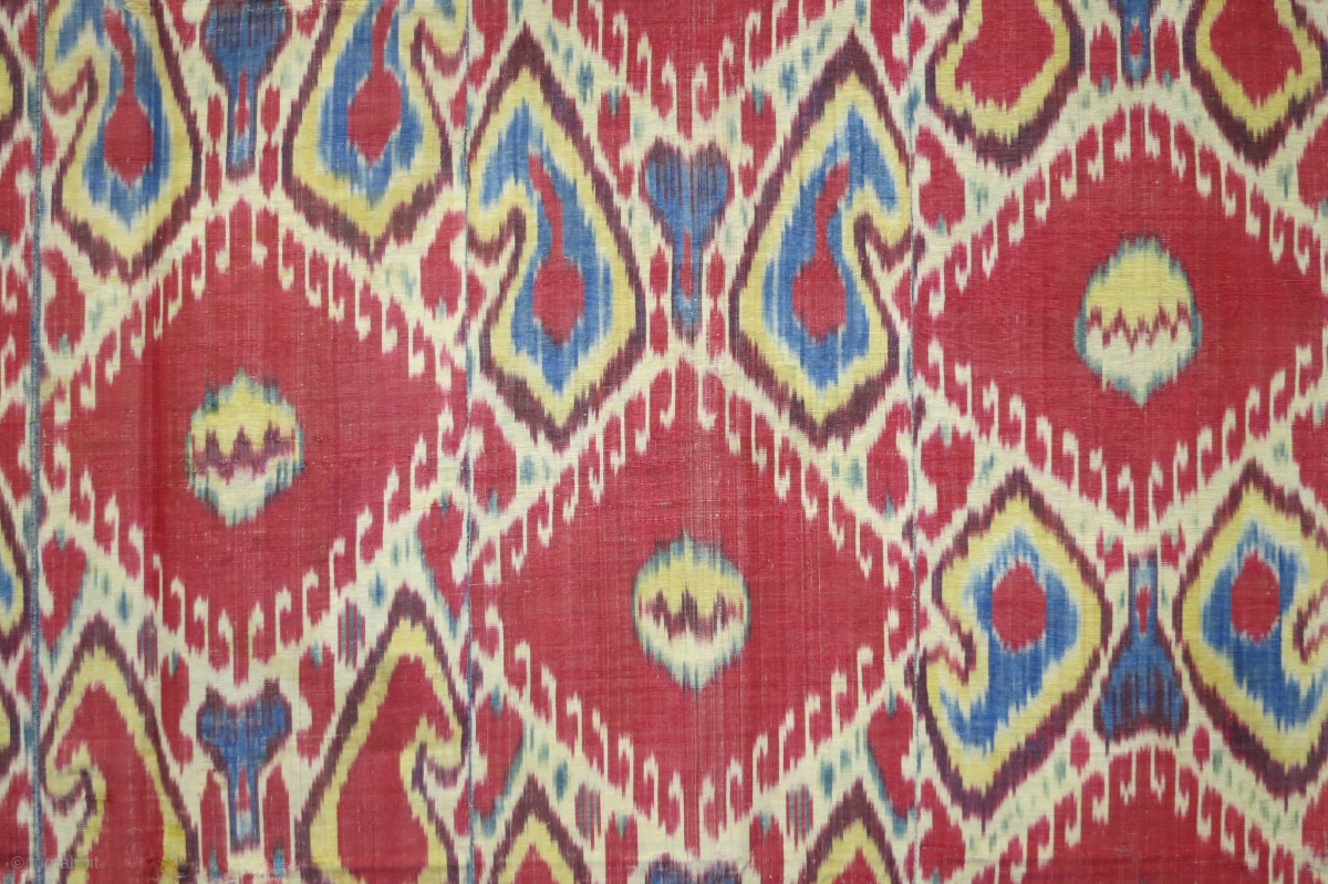Uzbek ikat wallhanging, Bokara, silk resist dyed warps and cotton wefts, 56 x 83 inches, in excellent condition.