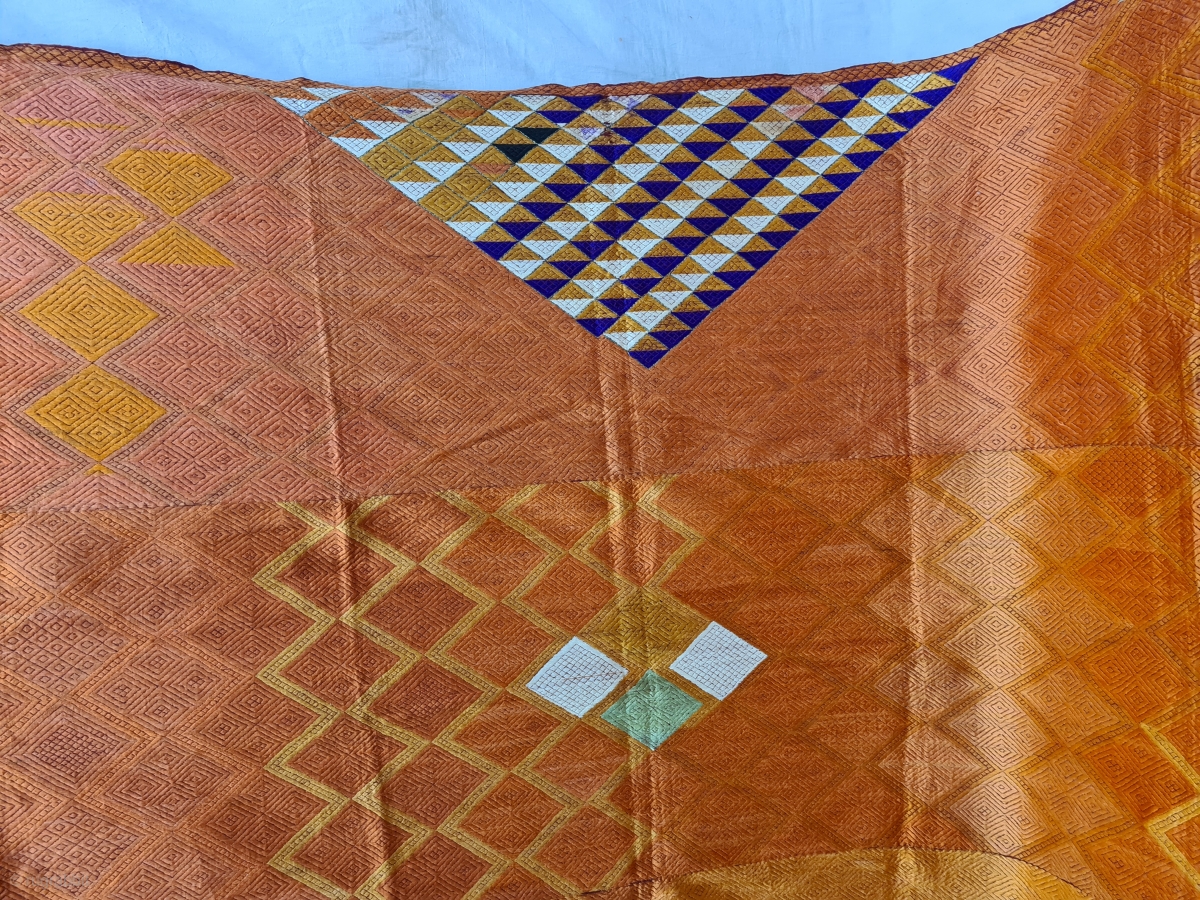 Vari-Da-Bagh , Phulkari From West(Pakistan) Punjab. India. India. untwisted Floss silk on hand spun Brown cotton ground cloth.