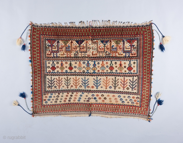 Qashqai saddle cover. a great one of its type with all soft natural colors as opposed to most of these which are late and have hot colors. Great condition. Ex James Opie collection.