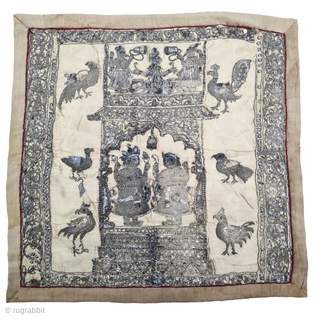 Very Rare Temple Hanging Illustrates the Jain Concepts of a Heavenly Mansion where eternal rejoicing awaits the Devotee.