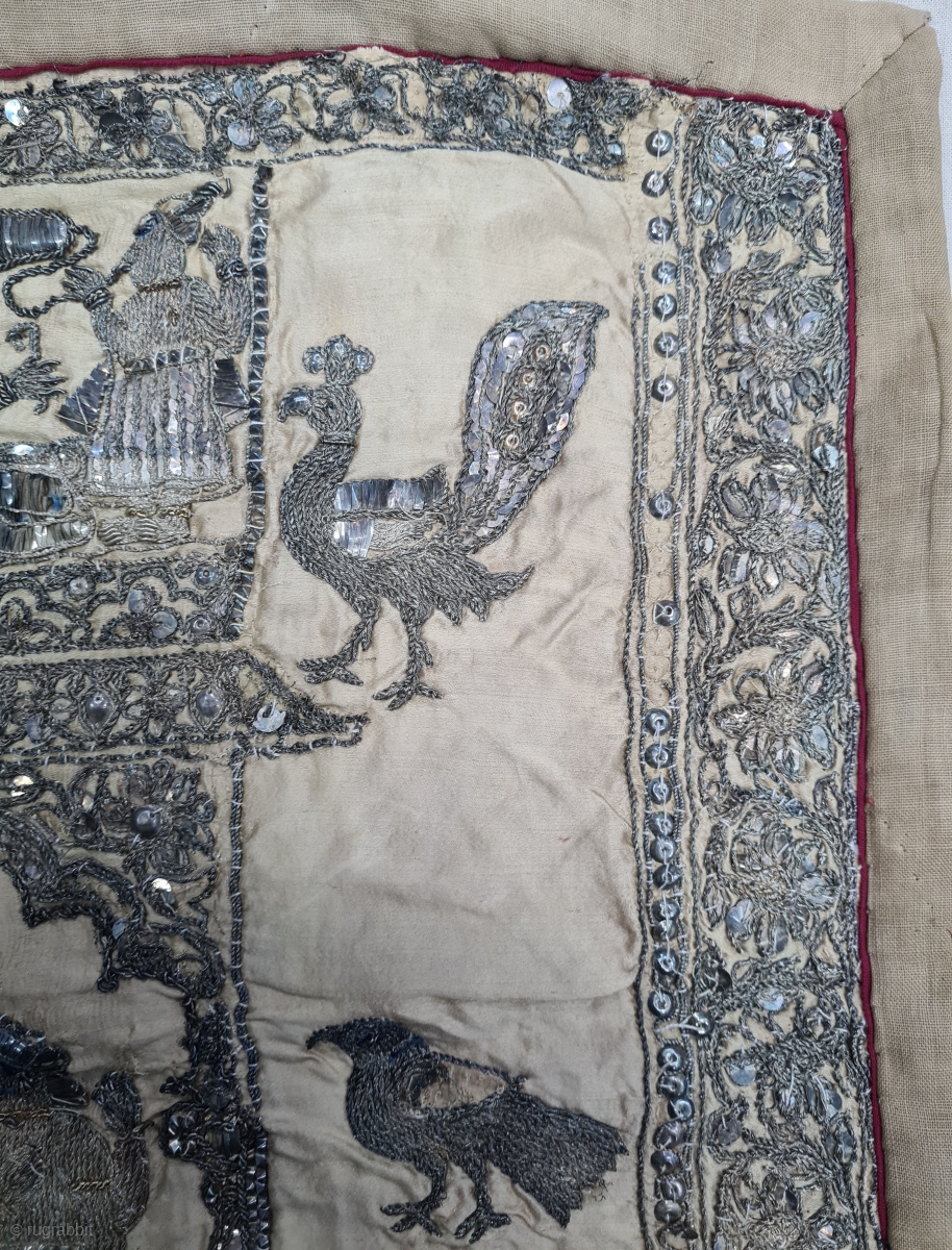 Real Zari Silver Gilt Threads Embroidery on the Silk. From the Gujarat, India. India.