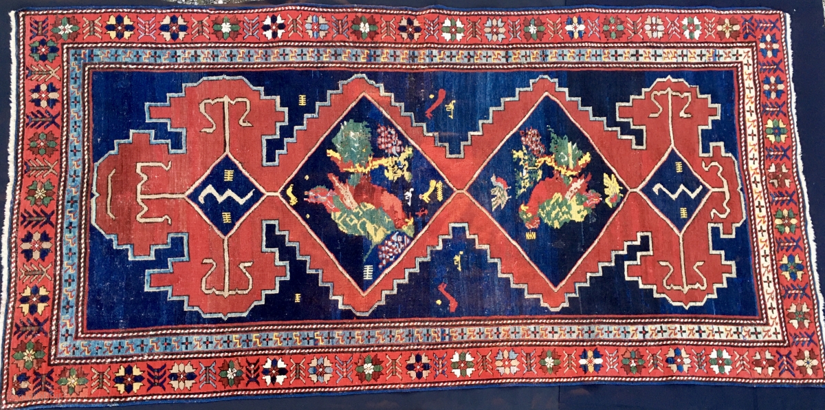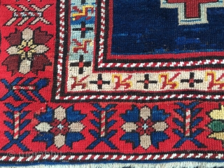 Karabagh rug, cm 235x118, ft 7.7x3.8, early 20th century or older, lovely pattern, great dyes, some old restorations, in good conditions.