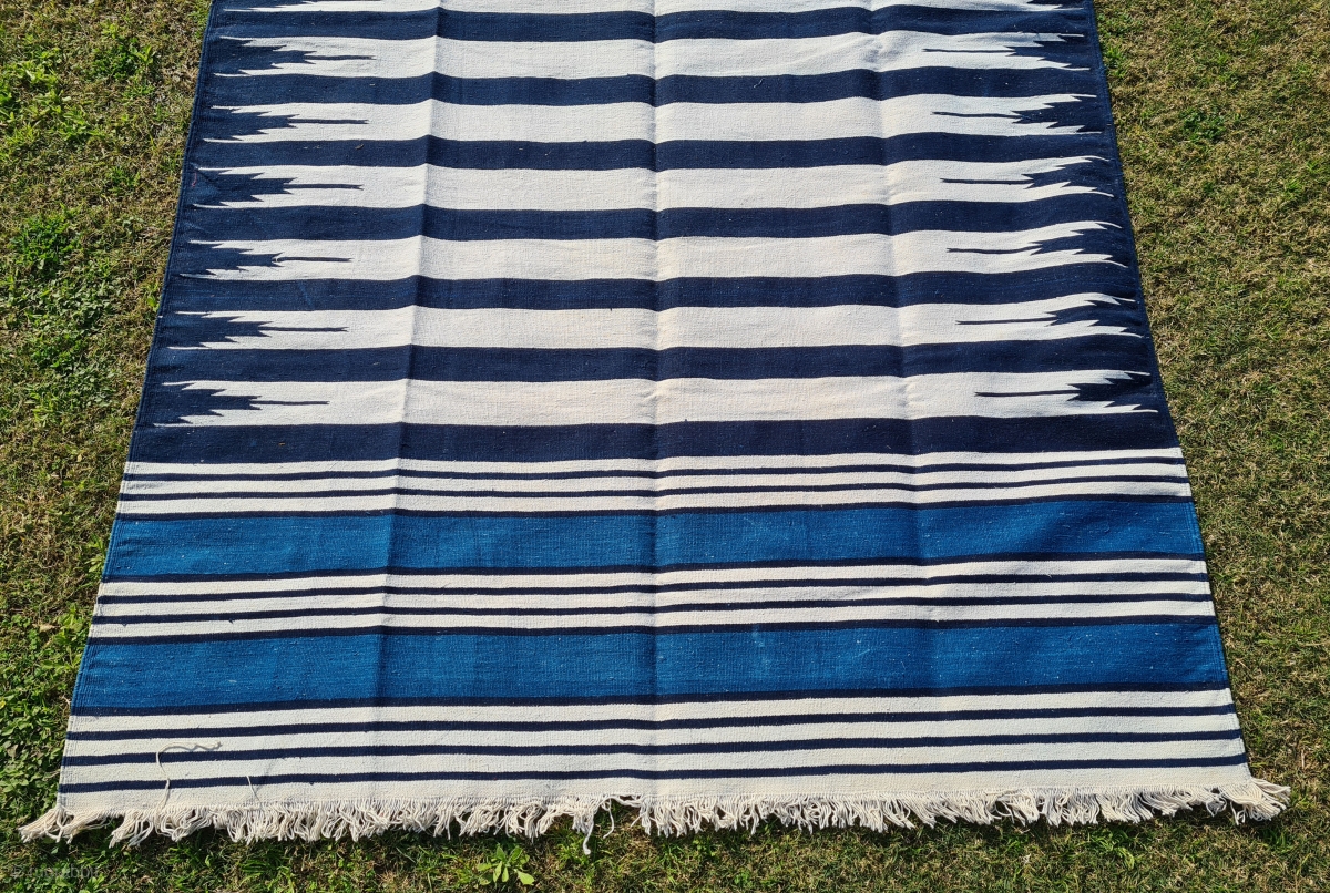Jail Dhurrie, Indigo Blue-White striped, Hand Spun Cotton, From Bikaner ,Rajasthan ,