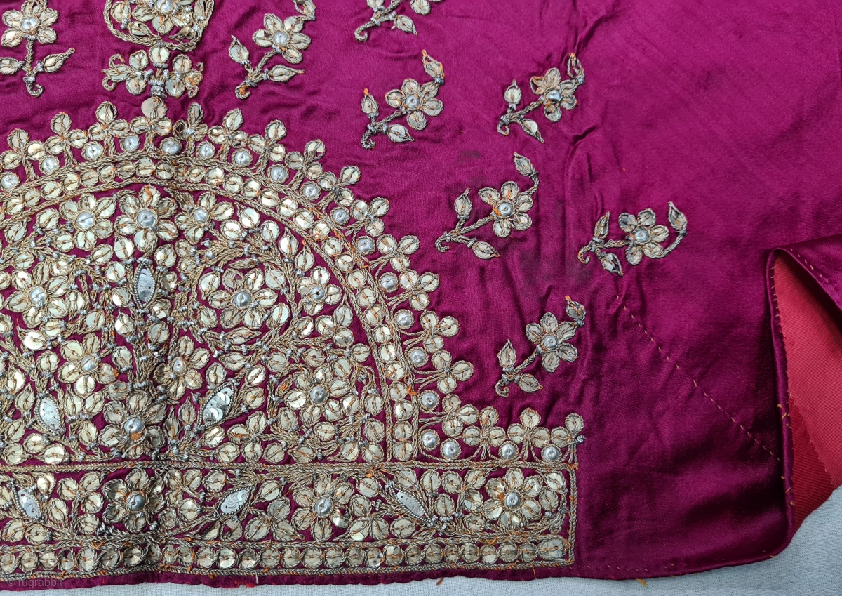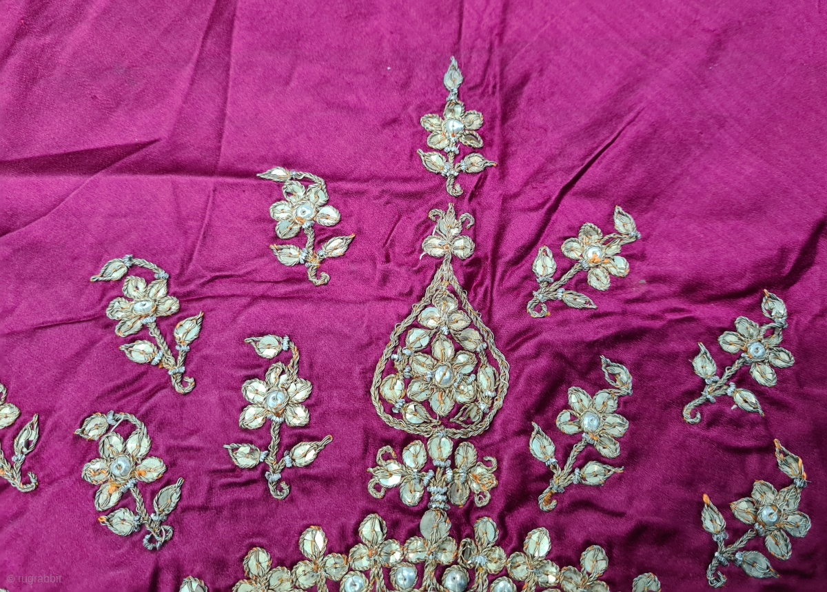 Ceremonial Head Cover(Musser), Karchob Embroidery(Real Gold And Silver Threads) On Gajji silk from Gujarat. C.1875-1900.Its size is 51cmX108cm(20220203_153754).