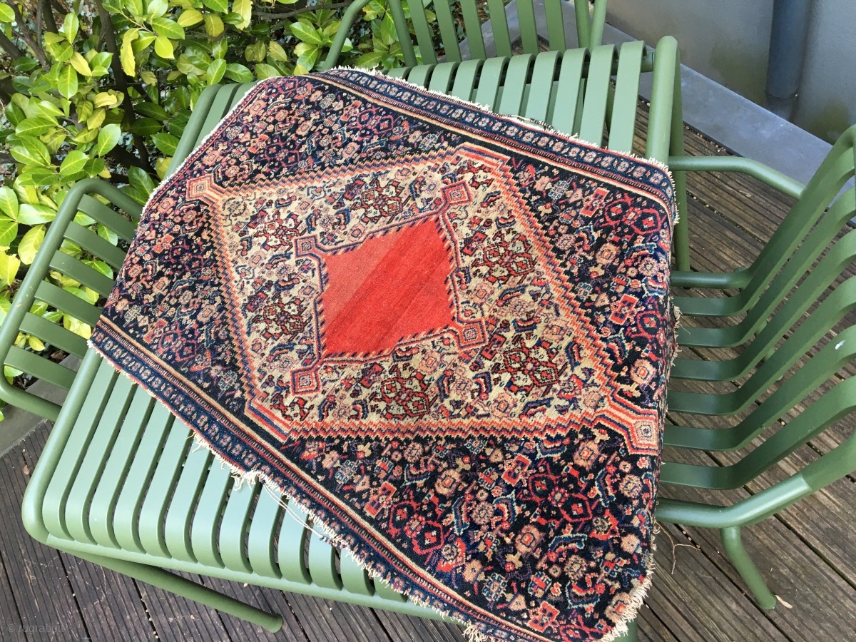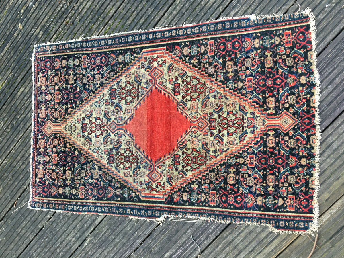 Senneh, kurdish, Antique small rug, fragment, great colors and very fine waive. Beautiful open field in red. size: approx. 93 cm x 60 cm. a very rare piece.