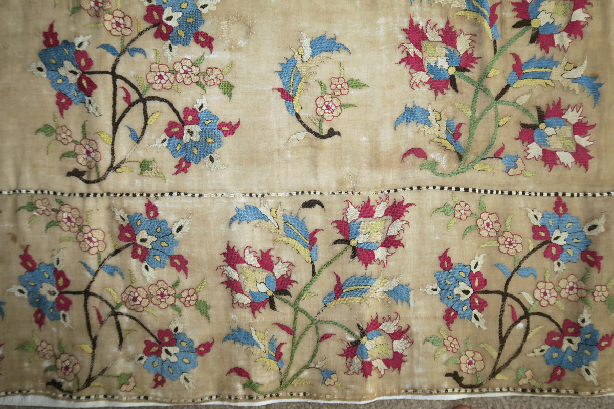 Ottoman embroidery fragment with classical drawing, likely 17th century, 3'6"x1'6"