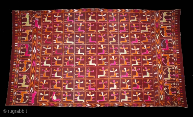 Phulkari From East(Punjab)India Called As Moor(Peacock) phulkari.Rare Figure Design.Floss Silk on Hand Spun Cotton khaddar Cloth.(DSL05130).