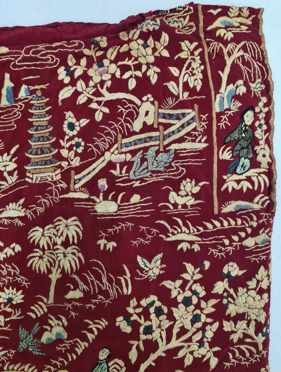 This kind of Jhabla was embroidered by Chinese artisans in the town of Surat in Gujarat for the Parsi women of that region.The Parsis are a Zoroastrian community in the Indian subcontinent. They are non Muslim Persians that were driven away from Iran when it became Islamic.