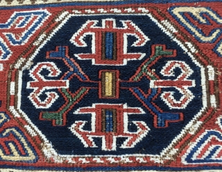 Extremely rare & beautiful. Azerbaijan. North of Baku. Khizy/Xizi. Shirwan? Mafrash sumack side/long panel. Datable 1860/80sh. Collectors/Museum item. Now available. p.s. According to "Mafrash", the well known book by Siawosch Azadi and Peter Andrews this long panel is Shahsavan. See page 95.