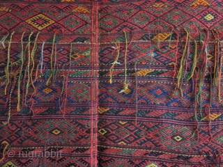 South Persia Sanjabi Kurdish ceremonial Saddle cover, saturated dyes, traditional weave and design.. 19th cent. Size : 46" x 47" - 117 cm x 114 cm