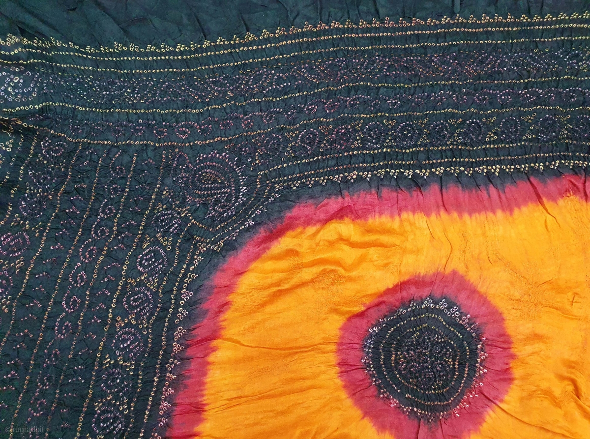 Ceremonial Tie and Dye Odhani known as Kumbhi, Natural Color Tie and Dye Work on the Gajji-Silk From Kutch Region of Gujarat, India. Early 20th Century. Its size is 145cmX155cm. This were Traditionally used mainly by Muslim Khatri community in Kutch, specifically to the town of Abdasa Kutch Gujarat(20201219_142820).