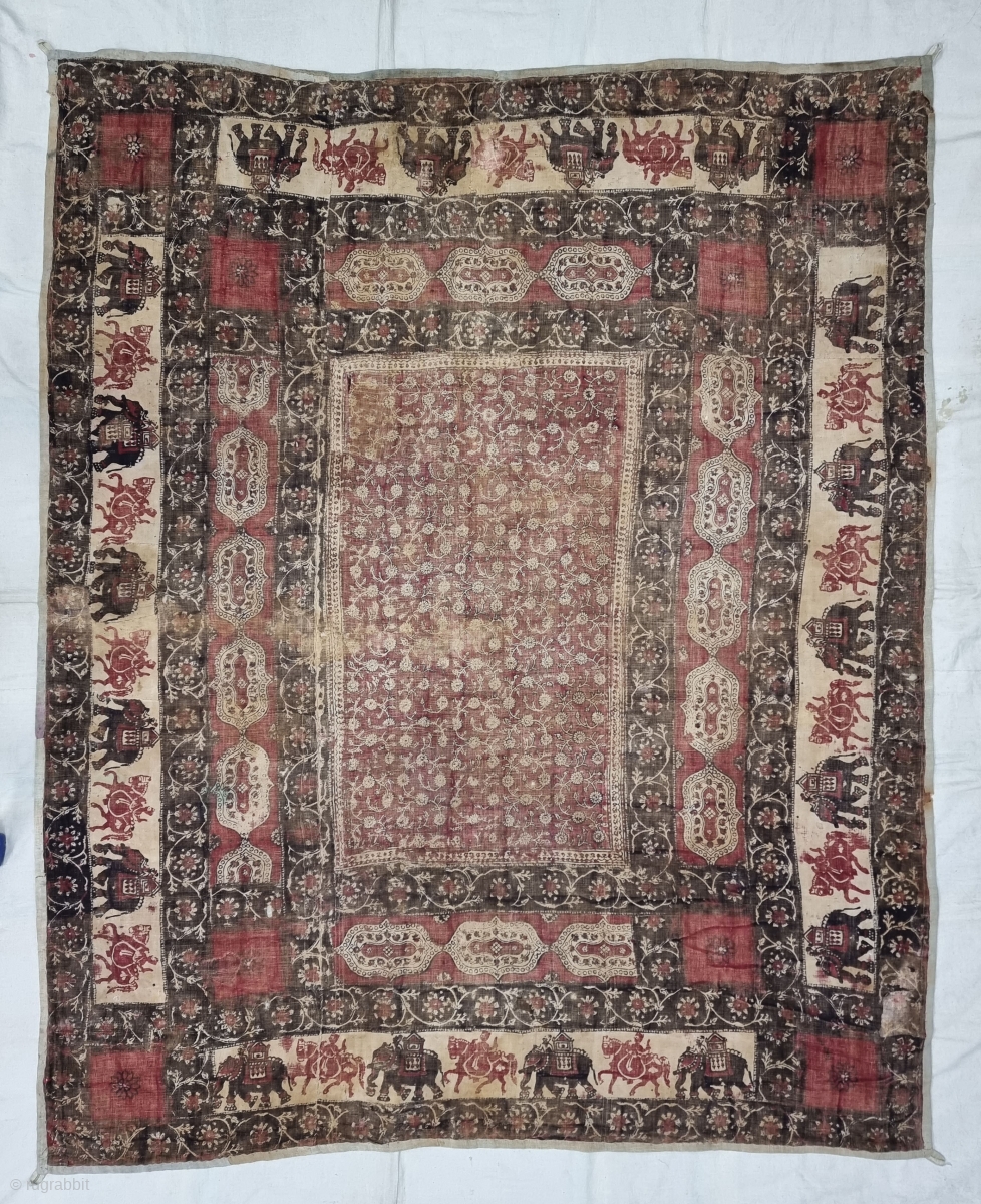 An Kalamkari And Block Print And Hand-Drawn, Mordant- And Resist-Dyed Khadi Cotton, From Gujarat Region of North-West India. India.