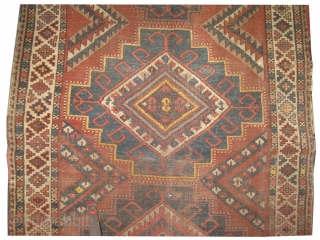 The black knots are oxidized, the knots are hand spun wool, the warp and the weft threads are mixed with wool and camel hair, the shirazi borders are woven on two lines, the background colour is rust, the surrounded large border is ivory, at the center four medallions, finely knotted, rare example, soft, high standard quality and in its original shape.