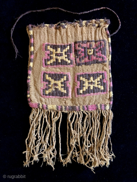Pre- Columbian bag,South Coast Peru, Nasca Culture b.c. 100 - a.d. 600. Camelid fiber bag or pouch with fringe. Very good condition. 6 x 10.25 inches with fringe.