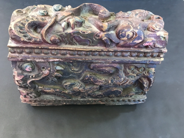 Figurative Antique Balinese Box: Carved from Jackfruit Wood. Wondrous figures and creatures.
