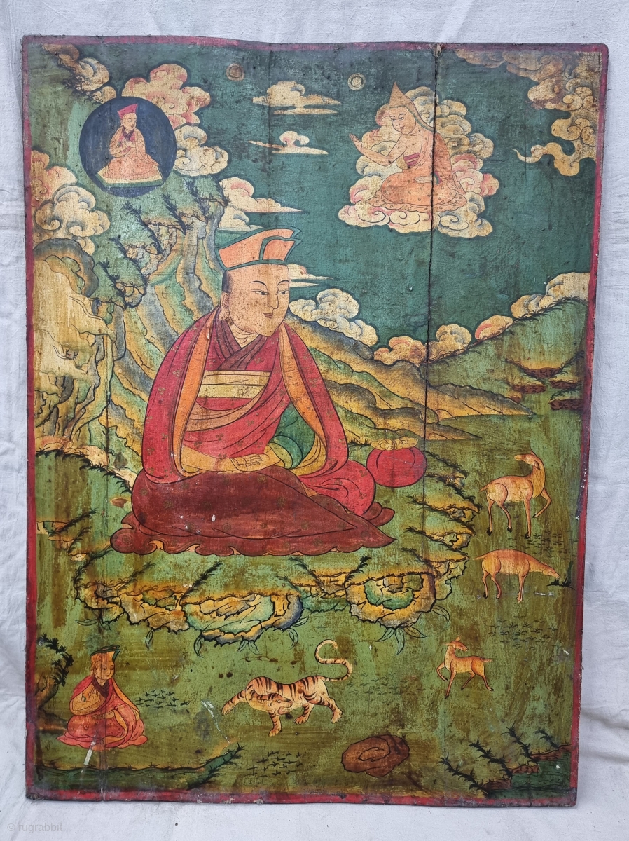 Dramatically Tibetan Buddhist Hand Painted Wood Panel