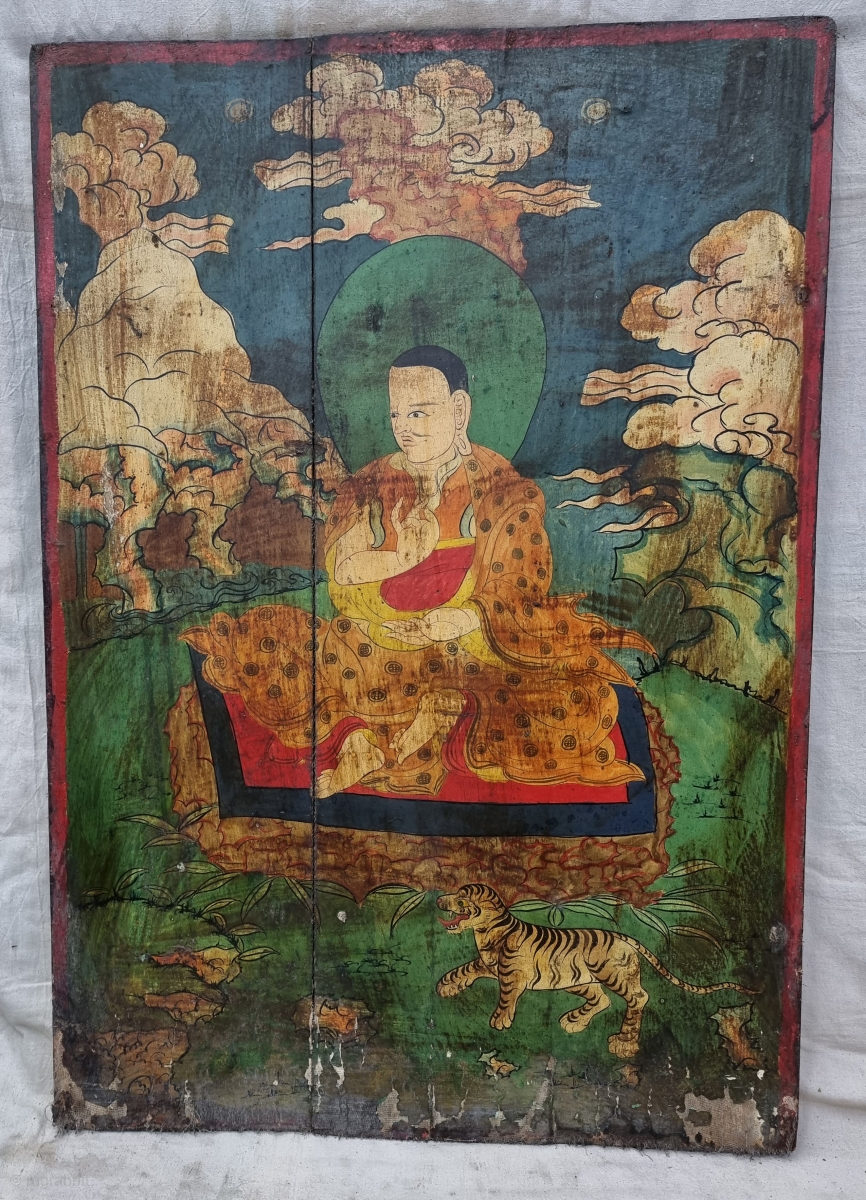 Dramatically Tibetan Buddhist Hand Painted Wood Panel